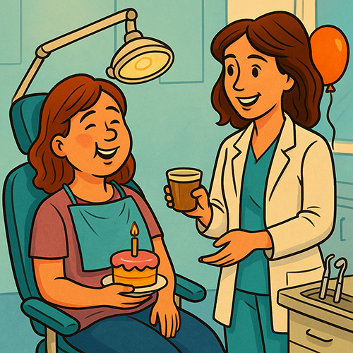 Тя пристигна. Отворихме зъба. Болката отмина. Подуването също тръгна да се прибира. А ние решихме, че щом така или иначе празнуваме — ще направим и една промивка. И една почерпка. По зъболекарски.