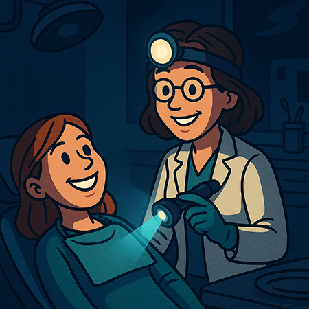 Зъбът е изолиран, почистен, подсушен. Готов е. Вземам фотополимерната лампата и… точно в този миг — токът спира. Пациентката ме поглежда с широко отворени очи и уста, сякаш чака някой да извика: